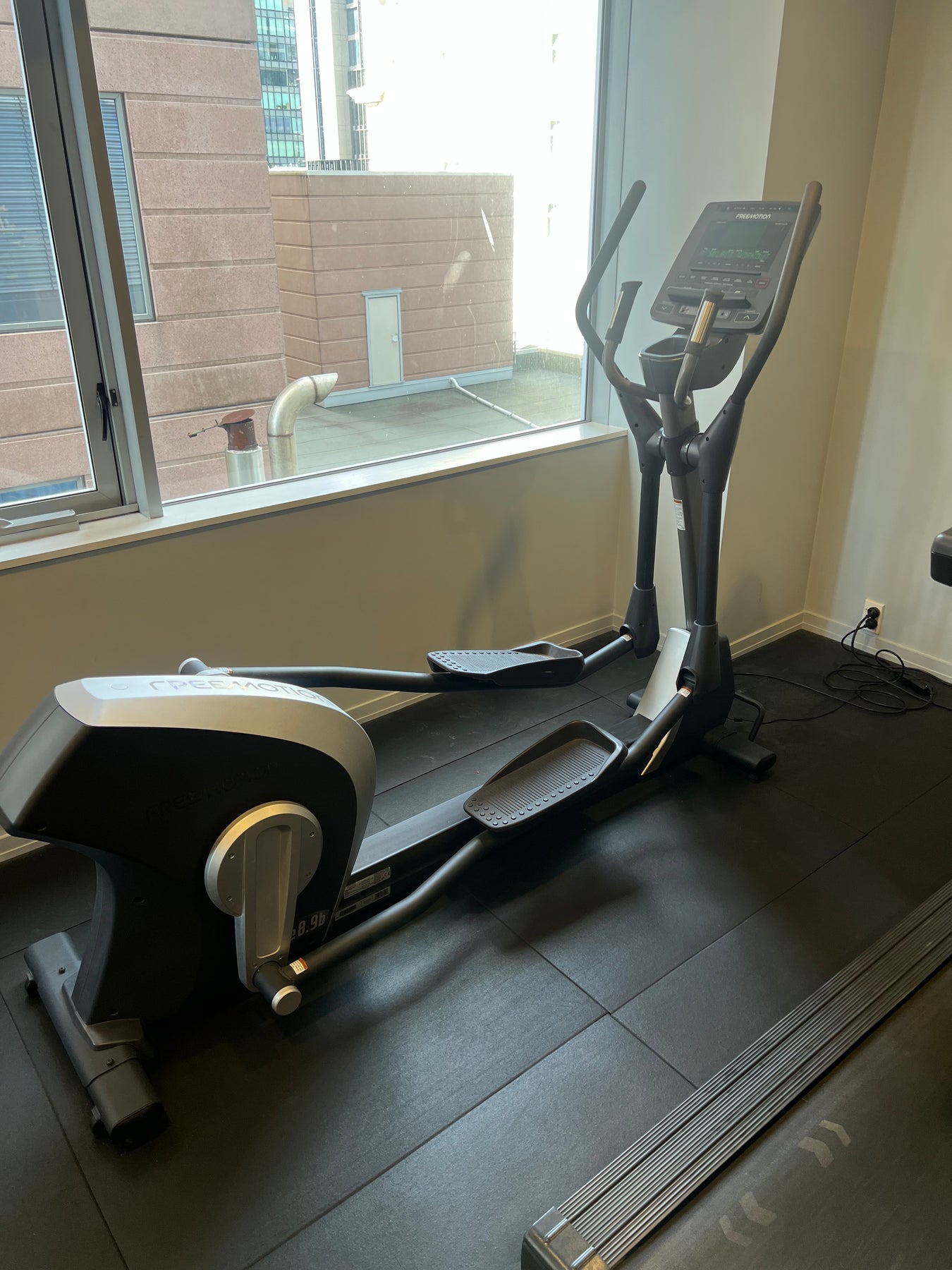 every exerciser. The stationary grip has a built-in heart rate sensor that
